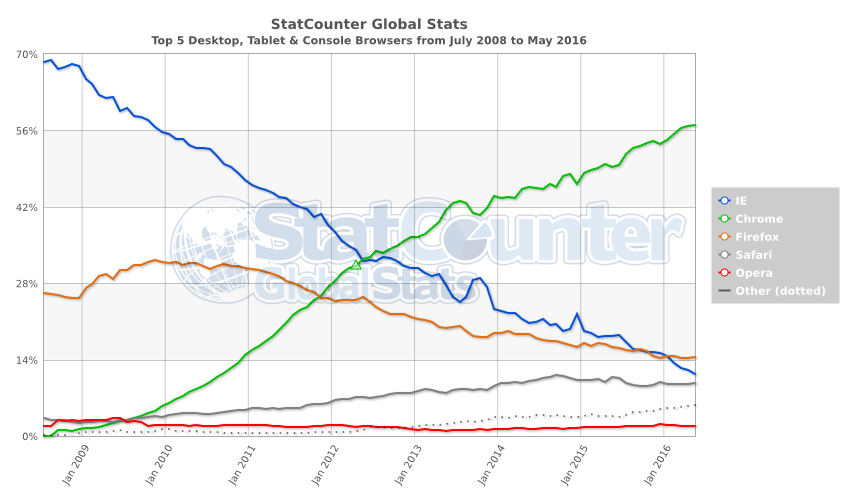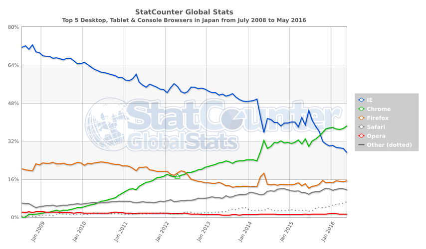ですが、まだまだお客様のところに行くとInternet Explorer(インターネットエクスプローラー)の比率が高い気がします。