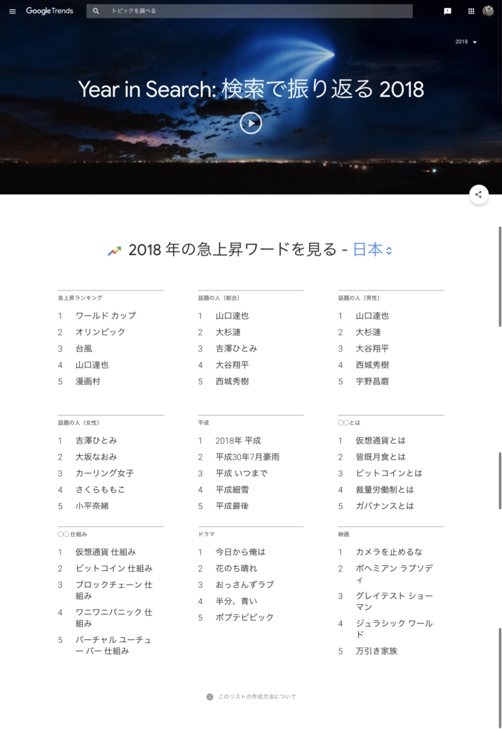 ちなみに、昨年2018年のトレンドは、以下になるそうです。